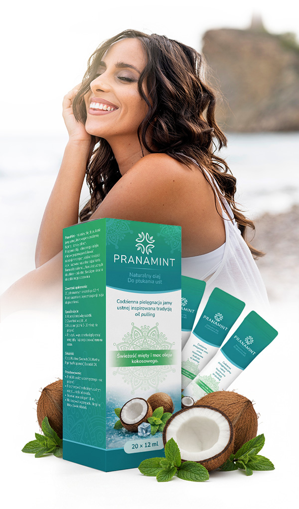 Ta nieinwazyjna, niewymagająca wizyt u dentysty, domowa metoda wybielania zębów pozwala w naturalny sposób uzyskać piękny, biały uśmiech. Naturalny ajurwedyjski olej do płukania ust zapewnia efekt wybielania zębów, a przy tym redukuje bakterie w jamie ustnej, płytkę nazębną i nieświeży oddech. Olej kokosowy zawiera kwas laurynowy i średniołańcuchowe kwasy tłuszczowe, które wykazują właściwości przeciwbakteryjne. Podczas płukania jamy ustnej wiąże bakterie, osady i płytkę nazębną, którą „ściąga” z powierzchni zębów i dziąseł w nieinwazyjny, a zarazem niezwykle skuteczny sposób. Olejek eteryczny z mięty to dodatkowe działanie antybakteryjne i natychmiastowe odświeżenie oddechu. Dla wygody użytkowania receptura została zamknięta w praktycznych saszetkach, które doskonale sprawdzą się w domowym zaciszu i podczas podróży.